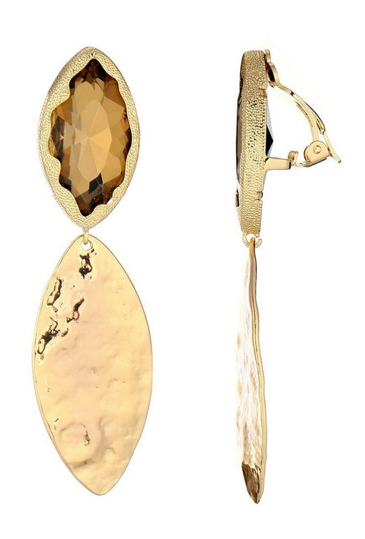Afficher tous les détailsBoucle d'oreille à clip en laiton dorée composée d'un cristal et d'une résine Taille: 4.5 cm x 2 cm Poids : 20 g Tous nos bijoux sont fourn...