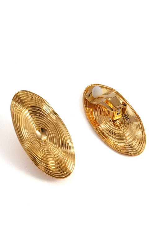 Boucle d'oreille clip en acier inoxydable motif ovale strié Taille : 1,3 cm x 3,6 cm Poids de la paire : 10 g