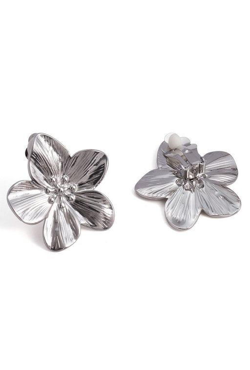 Boucle d'oreille clip en acier inoxydable motif fleur Taille : 3,3 cm x 3,2 cm Poids de la paire : 13 g