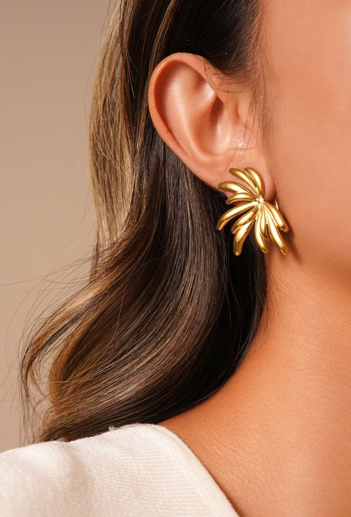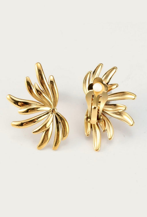Boucle d'oreille clip en acier inoxydable dorée motif feuilles éclatées Taille : 2,5 cm x 4 cm Poids de la paire : 14 gr