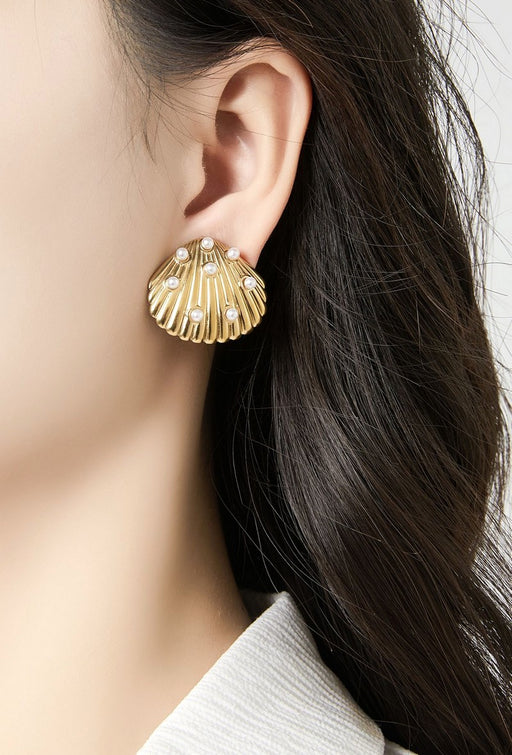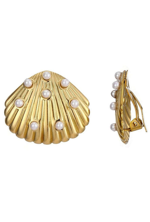 Prix d'origine €0,00 - Prix d'origine €0,00Prix d'origine €0,00€24,00€24,00 - €24,00Prix actuel €24,00Boucle d'oreille à clip en acier inoxydable Motif coquillage incrusté de perles blanches Dimension: 2.8 cm x 2.8 cm Poids : 11 g Résiste à l'ea...