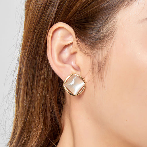 Boucle d'oreille clip en laiton dorée forme carré avec nacre teinté Taille : 2.5 cm x 2.5 cm Poids: 12 g