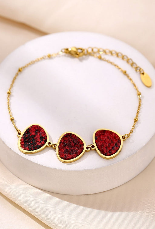 Prix d'origine €0,00 - Prix d'origine €0,00Prix d'origine €0,00€18,00€18,00 - €18,00Prix actuel €18,00| /Bracelet chaîne en acier inoxydable doré composé de PU imprimé serpent Motif: Trèfle à 4 feuilles Longueur 17 cm + 3 cm de rallonge Poids :...