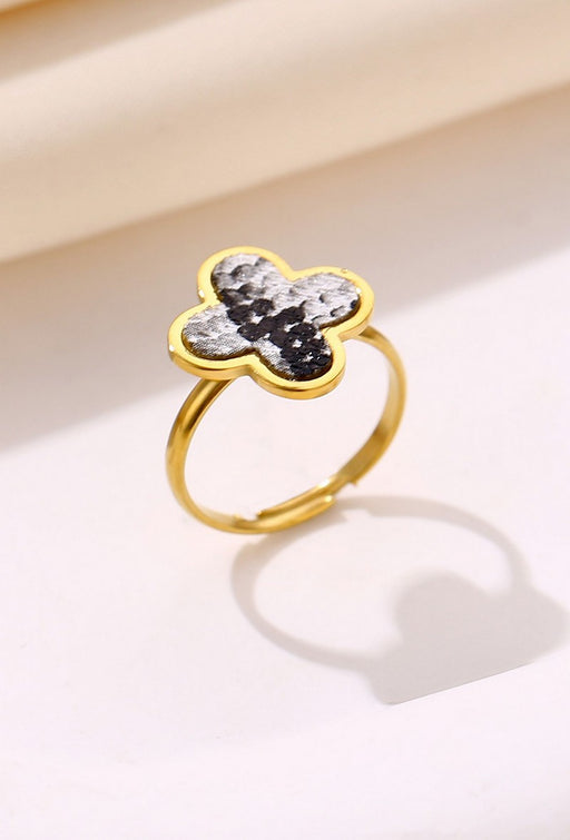 Prix d'origine €14,00 - Prix d'origine €14,00Prix d'origine€14,00€14,00 - €14,00Prix actuel €14,00| /Bague ajustable en acier inoxydable dorée avec imprimé PU serpent Motif: Trèfle à 4 feuilles Plus de problème de taille Taille du motif: 1.5 cm x...