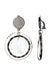 - Boucle d'oreille clip en laiton avec anneaux bicolore argenté/gun et pastille de nacre blanc au milieu