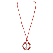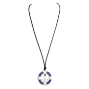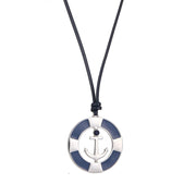 - Sautoir cordon similicuir bleu avec pendentif argenté ancre marin émaillé
